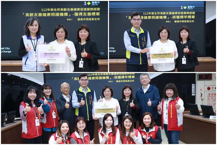 衛生局廖育瑋局長表示,今年「高齡友善健康促進服務認證」,是疫情後首次辦理,嘉義市東區衛生所在林唐逵主任的帶領下,本次認證更勇奪全國最高榮譽「標竿標章」;西區衛生所獲「友善標章」殊榮。嘉義市早在民國100年率全台灣之先成為第一個「高齡友善的示範城市」,今年超前佈署打造全國第一個「樂齡勇壯城」,從醫療到生態,佈建全方位的康健環境,讓嘉義市得以在高齡海嘯浪潮中站穩腳步,健康老化、樂齡勇壯前進!