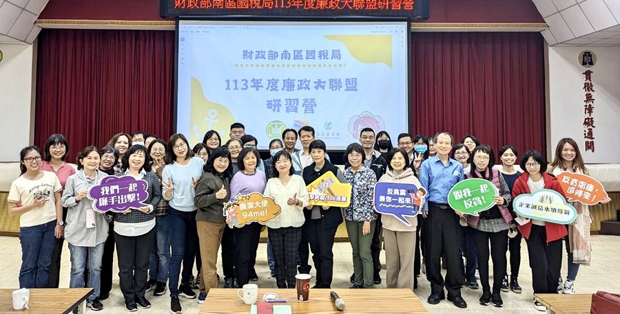 財政部南區國稅局於113年3月8日辦理「113年度廉政大聯盟研習營」,由李雅晶局長帶領所屬分局分局長、稽徵所主任與兼辦政風業務同仁,共同集思廣益及研商廉政政策如何更有效推展落實,並邀請海洋委員會王永昌專門委員擔任講座,以「從如何扮演好機關守護者談起」為題進行專題課程,藉由自身公務處理經驗分享,講述突發事件應變與公務溝通協調等技巧,有效協助同仁即時解決問題及共創徵納雙贏;另跨域與臺灣港務公司共同深化交流法務部廉政署持續推動「企業服務廉政平臺」廉能政策。