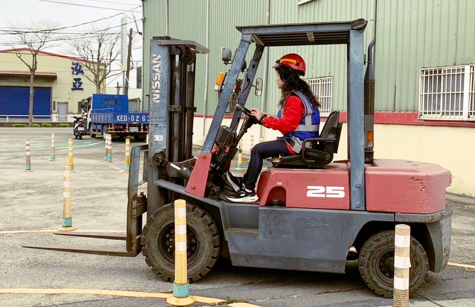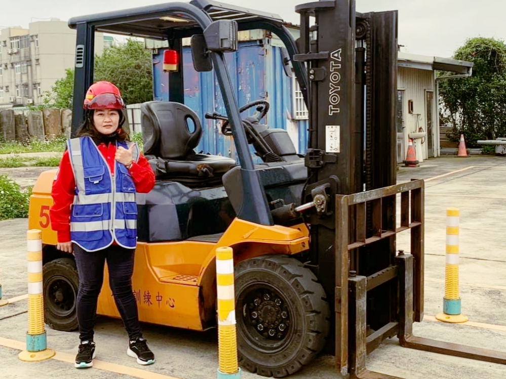 42歲的周淑琪原本在製造業擔任業務助理,負責文書內勤工作,一次偶然的機會,她看到同事在操作堆高機,得知勞動部提供在職勞工補助課程學習第二專長,於是她立即報名由中華民國安全衛生職能發展協會附設的桃園職業訓練中心辦理的「荷重在一公噸以上之堆高機操作人員訓練班」,經過36小時的扎實訓練,讓她成功考取堆高機證照。