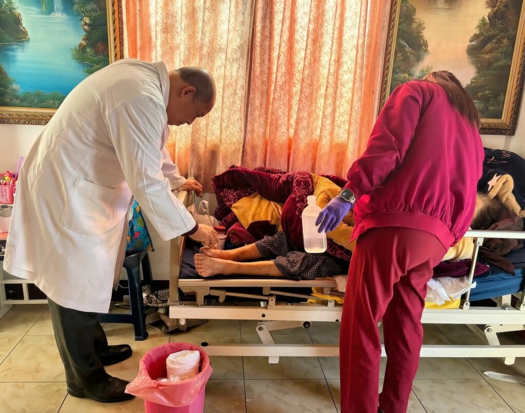 居家醫療的價值在於「早期發現、即時處置」。去年11月底,醫療團隊在例行訪視中敏銳發現曾奶奶右腳出現不明紅腫,疑似蜂窩性組織炎。醫師判斷需入院接受抗生素治療及處置,立即協助轉診至醫院進行清創手術。在曾奶奶住院期間,象鼻衛生室的團隊並未因病人離開山區而中斷服務,仍持續透過電話關懷追蹤術後狀況。直到曾奶奶康復出院,醫療團隊再次接手,結合每月一次的居家訪視與專科巡迴醫療,由專科醫師親自上山觀察傷口癒合情形。這種「院內治療、居家復健」的無縫銜接,化解了照顧者因就醫不便而產生的無助感。