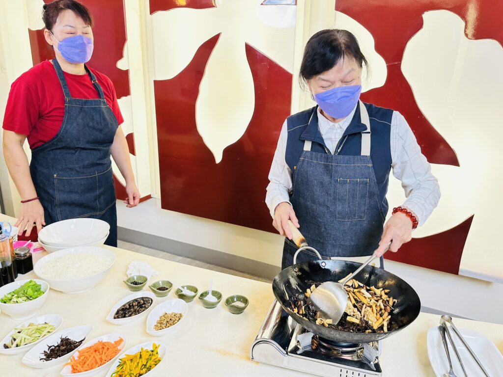 頭份市長羅雪珠,27日上午化身「黑白大廚」,結合頭份醇黑的「黑豆醬油」,以及雪白的「頭份尖山米粉」,廣邀全國的炒米粉大師們挑戰高額獎金。羅雪珠也特別現炒一道「美人素米粉」,結合東方美人茶入菜,以及當令蔬果蔬食,展現一流廚藝。
