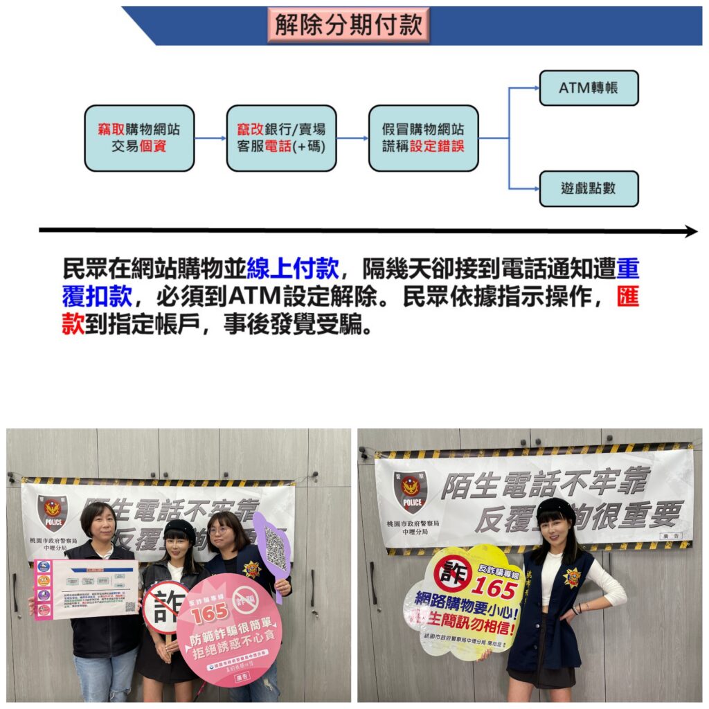 中壢警分局特別邀請廣受青少年及社會人士喜愛的網紅直播主「老闆娘沛蒂姐」拍攝反詐騙宣導短片,「老闆娘沛蒂姐」於短片中除宣導反「解除分期付款」外,更分享自身經營之商品網站,曾經遭詐騙集團竊取個資及交易紀錄,接獲客戶詢問為什麼還要再提供銀行帳戶資料,驚覺網站遭駭客入侵,立即通知網站公司進行更新,並發送防詐簡訊提醒每一位客戶,避免其他客戶遭詐騙;「老闆娘沛蒂姐」更是提醒大家ATM不能操作解除分期、+886電話都是詐騙居多,不要再被騙囉!中壢警分局再次呼籲民眾接獲來電號碼開頭顯示為+886,務必要小心,因為很有可能是跨境詐騙電話,並提醒操作ATM、網路銀行無法解除任何購買商品的設定,請牢記「一聽、二掛、三查證」,遇到疑似詐騙情形,請立即撥打165反詐騙諮詢專線詢問。