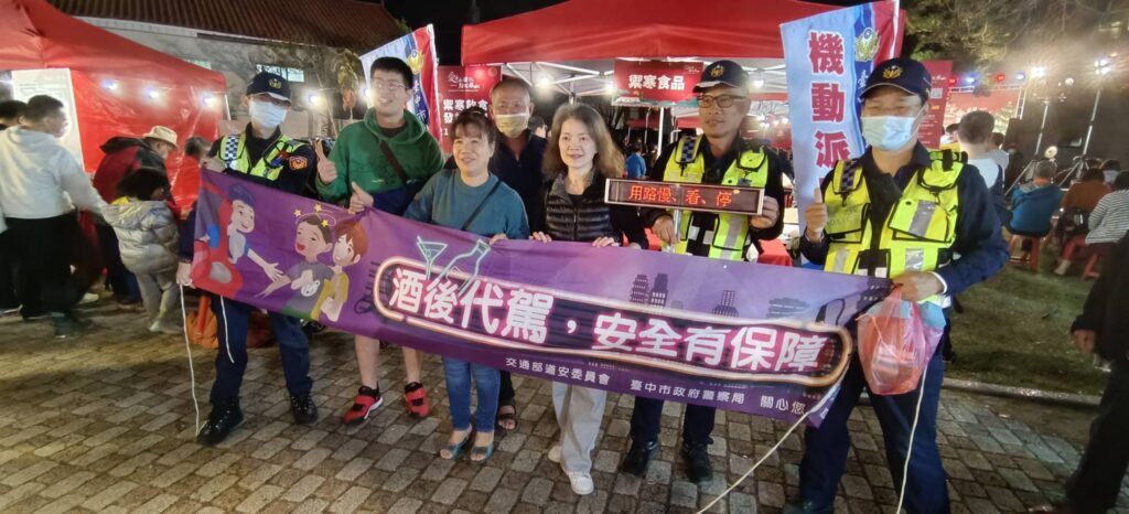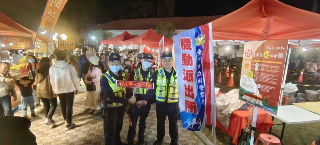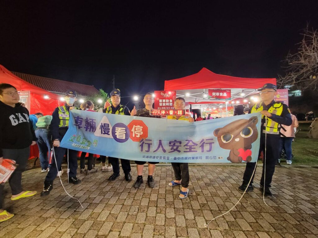 和平警分局在會場設置機動派出所,服務遊客,並宣導「酒後不開車、不跨越雙黃線超車、不超速、尊重路權、停讓行人、行人穿亮衣」、「充分休息再上路、提早出門不趕路」,加深民眾用路安全觀念。