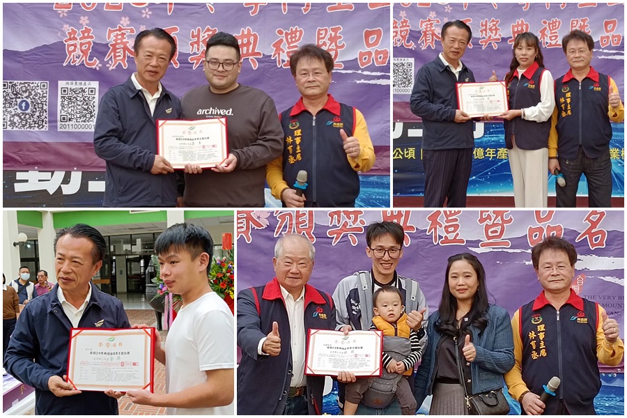 此外,頒獎及品茗典禮中,同時頒發「第12屆海峽兩岸茶文化季暨第24季兩岸秋季茶王擂台賽」得獎茶農,「茶王獎」得主為台灣育丞茶業林思翰;「特別金獎」高帝園茶業邱詩富、 舞青山茶業陳乙安;「金獎 」林尚旻、一品茶業-葉怡君、台灣藏韻茶業-林展緯等3人;「銀獎」有台灣淳之韻茶業-郭雅淳等5人;「匠心獎」台灣藏韻茶業-林展緯等6人