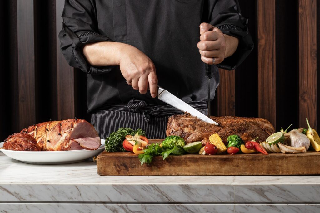 因應現代人工作或是生活習慣的改變,「早午餐」的飲食習慣,越來越受歡迎,不僅可以滿足不想早起的人,也能吃到營養滿分、多樣菜色的早餐菜色。台南大員皇冠假日酒店聽到饕客的敲碗聲,2024年元素餐廳平日週一至週五午餐全面調整「早午餐Brunch」,營業時間提前於11:00開始供應,特別保留早餐時段人氣菜色,例如:健康沙拉吧、牛奶及優酪乳的飲品吧、清粥小菜,更重要還有台南在地小吃區,包括: 牛肉湯、虱目魚皮湯、滷虱目魚頭、碗粿、肉圓、刈包、水晶餃、芋籤粿、燒餅夾肉、米糕等輪流出菜。還有高人氣必吃的蜂蜜烤火腿,選用豬後腿肉,先以140度低溫烤40分鐘後,再反覆刷上蜂蜜水翻滾烤製,鎖住蜂蜜的清香,搭配自製焦糖烤鳳梨的酸甜滋味與火腿鮮嫩多汁,讓人一吃上癮,念念不忘,還可以搭配麵包,夾入炒蛋、生菜,就是一份升級版的豪華三明治,創意吃法輕鬆作,當然也可以運用在DIY熱壓三明治,兩片吐司隨自己的喜好加入起司、火腿、生菜、蛋類等配料,想怎麼吃都行,美食無極限,手作創意是王道!人氣必吃的還有香辣烤豬排,選用梅花豬先以紐奧良香料醃製一晚,以140度烤40分鐘,再以170度高溫烤15分鐘後關閉烤箱,靜置9分鐘,透過餘溫讓豬排內部慢慢熟化,保留豬排外香內嫩的異國風味,薄切一片搭配麵包或焦糖鳳梨醬,風味很高雅;厚切一塊享受大口吃肉的過癮,肯定讓肉肉一族為之瘋狂。另外,蛋類現作區是早午餐必備選項,游輝杰主廚開出多達19種的營養蛋料理,包括:水波蛋、歐姆蛋、班尼迪克蛋、松露炒蛋、西式炒蛋、義大利烘蛋、三色炒蛋、菜圃蛋、太陽蛋、茶葉蛋等,每天會輪流出現4種蛋料理,讓您滿足攝取蛋白質的興奮快樂。