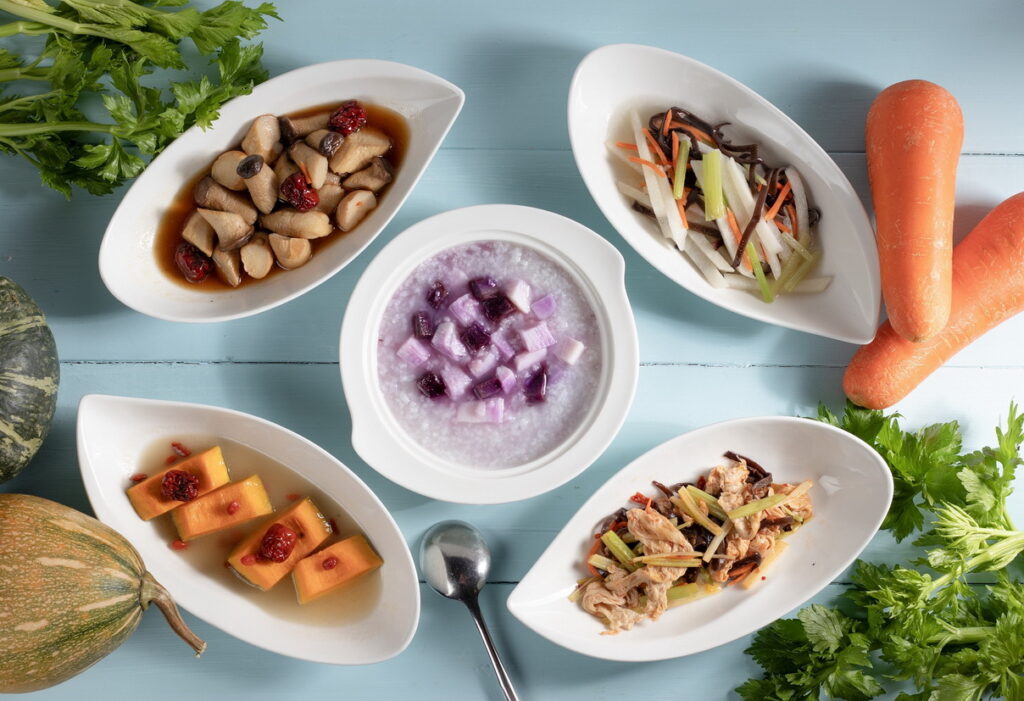 迎合健康素食生活的客人,元素餐廳早午餐也設有素食專區,主食有紫薯山藥粥、地瓜粥、南瓜粥或是白粥、素炒飯、素炒麵、素炒米粉、素炒冬粉等;熱食有枸杞蒸南瓜、麻油杏鮑菇、豆薯木耳絲等,菜品多元輪番出菜,從清新的沙拉、營養豐富的蔬菜盤到創意十足的素食料理,每一道菜都將是素食主義者的味蕾享受。