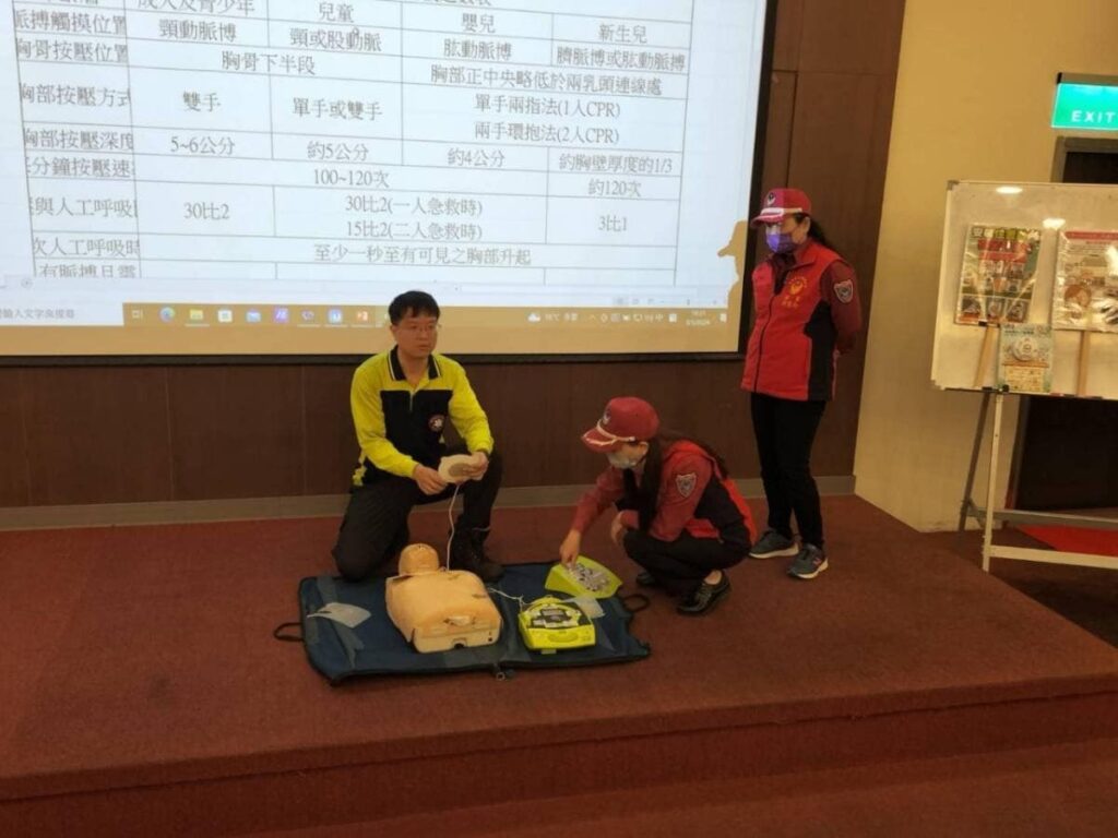 近期氣候持續低溫,容易發生心肌梗塞或一氧化碳中毒事件。此時,心肺復甦術(CPR)和自動體外心臟去顫器(AED)的操作就變得非常重要。美國心臟協會AHA資料顯示,病患昏倒1分鐘內施行AED電擊,存活率高達9成。百福分隊的消防員帶領參與者進行實際演練,強調在緊急狀況下迅速而正確提供心臟急救的重要性,這在遇到的緊急狀況中是挽救生命的利器。