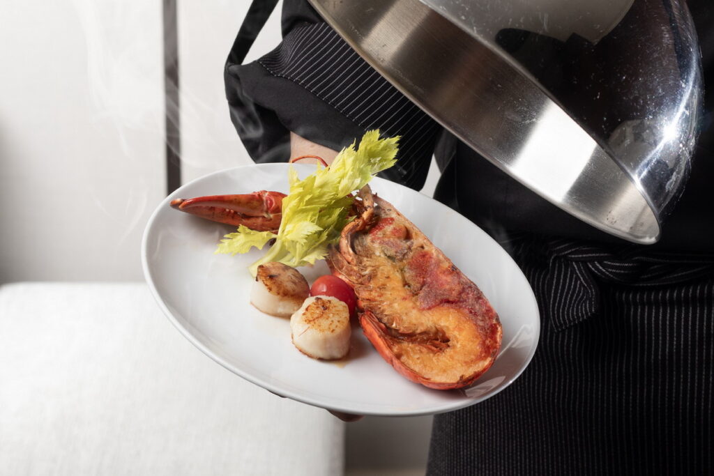 有鑑於平日與假日用餐的客群不同,週五晚餐、週六午晚餐、週日午餐的時段屬於假日餐價成人每位1,399元,游主廚菜色再加碼升級,除了成人每位可享用龍蝦半尾與香煎干貝2顆的位上服務1次之外,餐檯上居然出現了高級餐廳單點的重量級菜色「戰斧牛排」,低溫慢烤、鎖住肉汁,比一般烤牛肉多了30-40%的爐烤時間,大約7-8分熟的粉紅肉,吃起來肉嫩多汁,切上一片8盎司的話,價值就有1,000元了,吃上兩片肯定值回票價,滿足肉肉一族,配上無限暢飲的紅、白酒及熱紅酒,自助餐也能像高級西餐廳般的高雅精緻。以上價格須另加10%服務費。為維持用餐品質請事先訂位06-512-1807。【溫馨提醒:飲酒過量有害健康】。