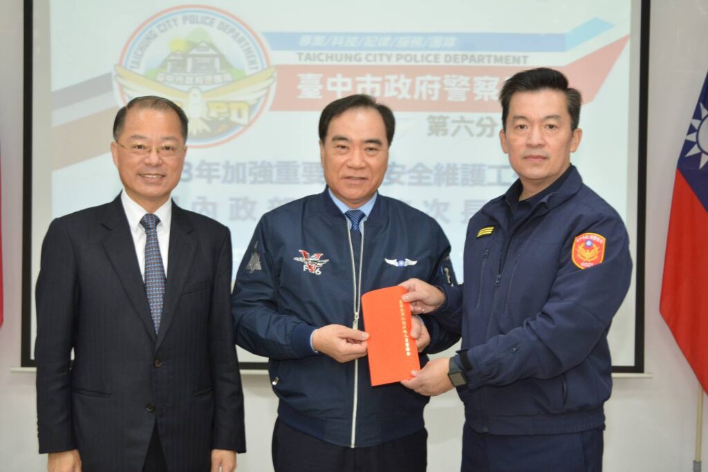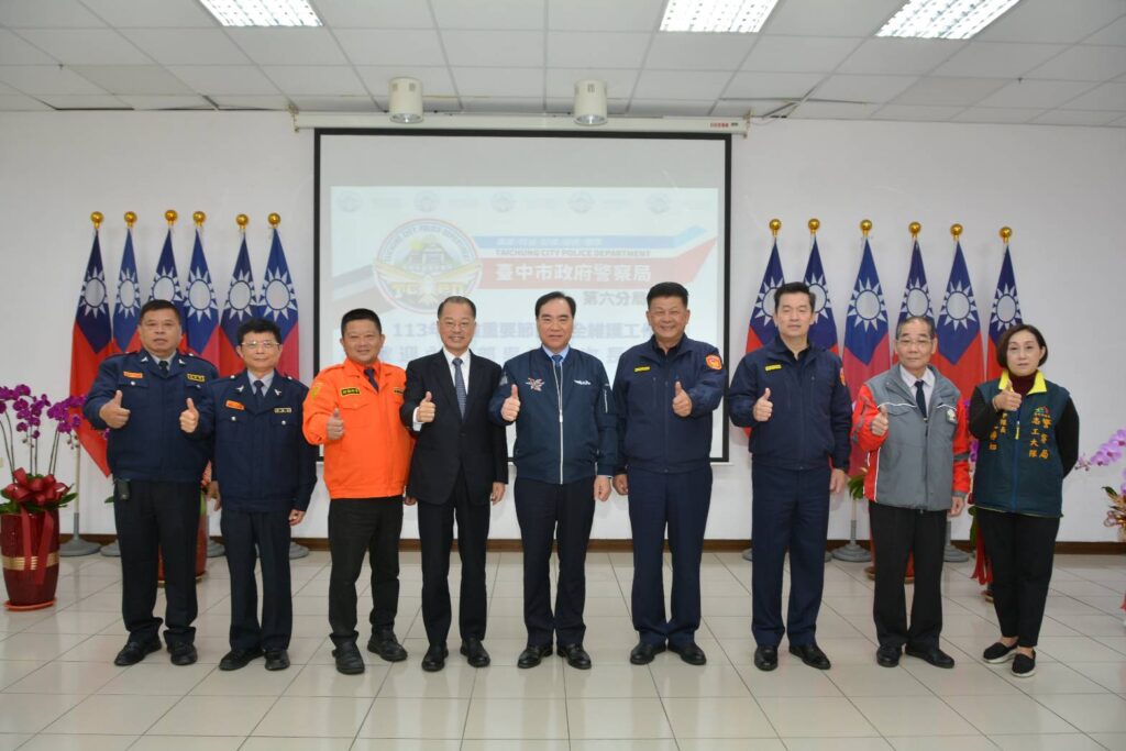 第六分局去年執行本項專案工作即以卓越績效脫穎而出,名列臺中市「特優單位」。本次執行「113年加強重要節日安全維護工作」,第六分局為讓民眾平安歡度春節,除秉持「治安平穩」、「交通順暢」、「民眾安心」的3大工作主軸外,特別強化轄區金融機構等財物匯集處所之安全維護,另針對轄區易壅塞路段、百貨商圈、觀光景點、轉運車站等,加強規劃執行交通疏導管制,讓民眾能夠快快樂樂出門、平平安安回家。第六分局對於各項重點工作之規劃執行深獲吳次長的肯定,吳次長現場除致贈團體獎勵金及慰問金外,並與在場人員握手致意與合影留念,也特別叮嚀警察同仁在工作之餘,注意身體保暖及執勤安全,適時返鄉與家人團聚。