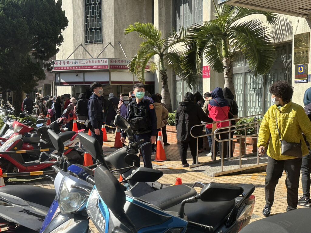 ▲圖說:換新鈔大排長龍! 喜迎龍年壢警防搶協助護鈔。 (圖/桃園市政府警察局中壢分局中壢派出所提供)