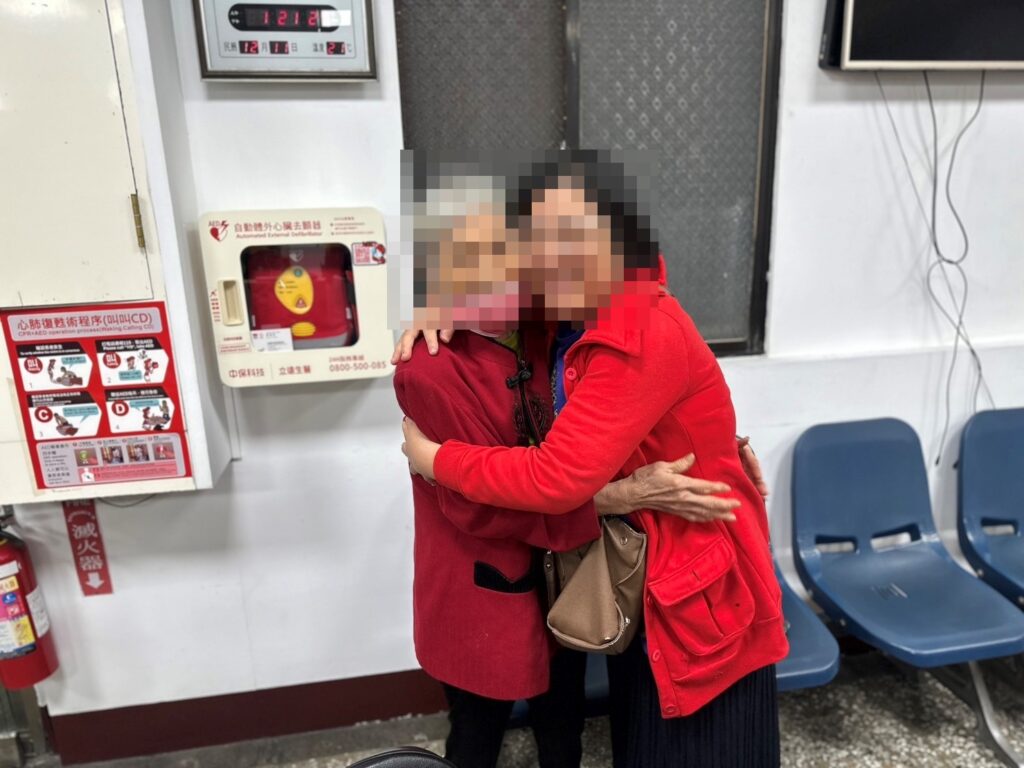 經警方詢問下,該76歲劉姓老婦表示忘記回家的路,僅記得名字及年齡,由於越晚越冷,警方遂先行將渠載返所休息,最後透過警政系統拼湊查出老婦身分,並發現已被家屬通報為失蹤人口。經了解,劉姓老婦下午要與女兒一同出門,惟渠自行先搭乘電梯下樓從地下室離開,家屬下樓後便不見老婦蹤影心急如焚,因渠患有失智症,出門許久恐發生危險,遂立即至就近派出所報案協尋,所幸接獲到警方來電稱找到母親才放下心中大石,家屬至所見到母親彼此相擁喜極而泣,對於警方尋獲母親感恩不已。