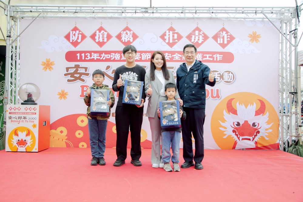 新竹市「113年加強重要節日安全維護工作」自2月1日起至2月15日展開,為期15日,竹市警察局特別於今(2/3)日在大魯閣湳雅廣場舉辦「防搶竊.拒毒詐.安心好年Belong(龍)to you」犯罪預防宣導闖關活動。市長高虹安表示,農曆春節將至,竹市府透過寓教於樂的活動,加強提升民眾建立預防犯罪新知與觀念,平安好過年。