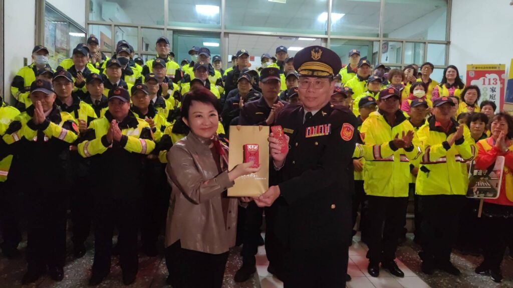 感謝第一線執勤人員在加強重要節日安全維護工作期間辛勞付出,盧市長和張議長親率副市長黃國榮、賴淑惠、副議長顏莉敏、市府秘書長黃崇典及民政局局長吳世瑋等人,在警察局局長李文章、相關單位主管及義警、民防、義交大隊長、臺中市大台中警察之友會理事長等人陪同下,於2月2日晚間,分成7組分別前往警察局所屬各分局暨派出所、臺中憲兵隊、消防局所屬各分隊及守望相助隊等,慰勉警、消、協勤民力之工作辛勞。