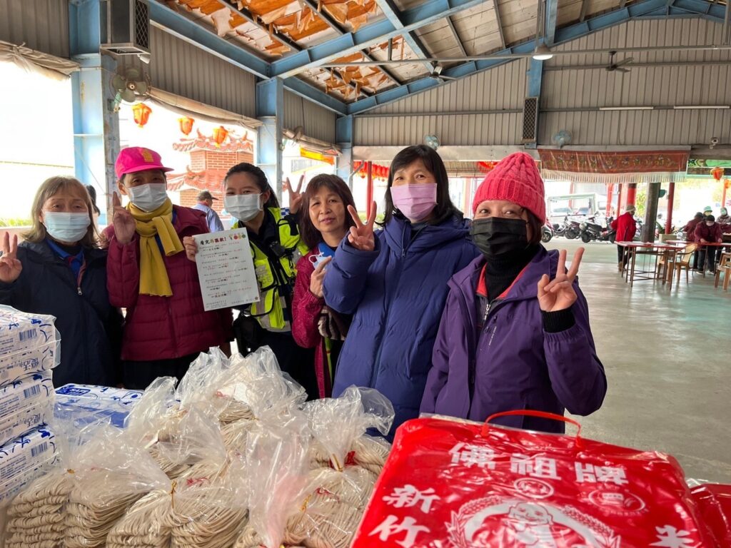 苗警結合轄內大圳面福德宮在農曆年前,大力號召三義鄉水美街木雕商家、地方仕紳有錢出錢有力出力募集白米、沙拉油等民生物資,讓轄內家境清寒的鄉親可以安心過好年。
