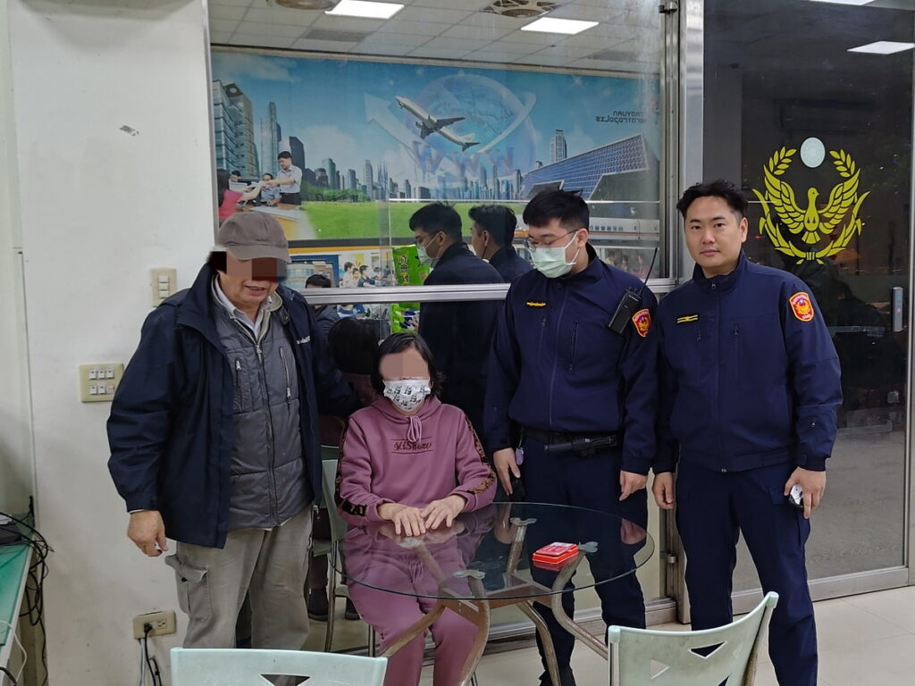 據了解,這位林婦患有失智症,對於員警的問話都無法回應。考量當時天色昏暗且氣溫較低,決定先將她載返派出所休息。然而,這名婦人身上完全沒有可以辦識身分的證件或資訊,所長楊文豐及副所長王聖平得知後也立即與2位員警一起進行比對工作,終於在一番努力之下,透過警政系統多方比對,終於得知該婦人的身分資訊,原來他的先生在15時就已經向警方報案,警方還發現她竟然是住在4公里外的大園區中正東路上,已經在外迷途了4個小時,趕緊通知她的配偶李先生來至派出所團圓。