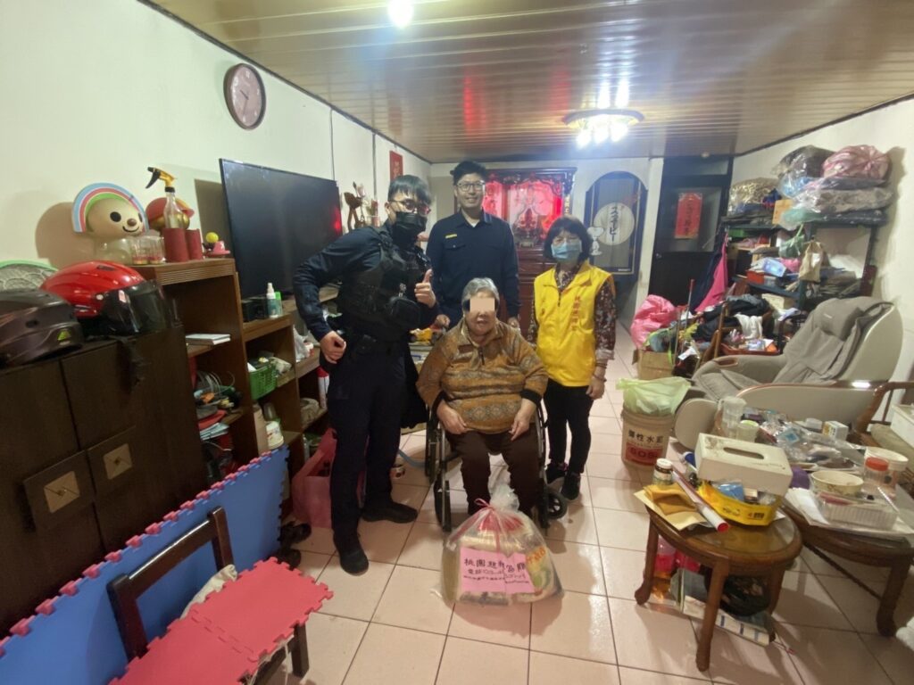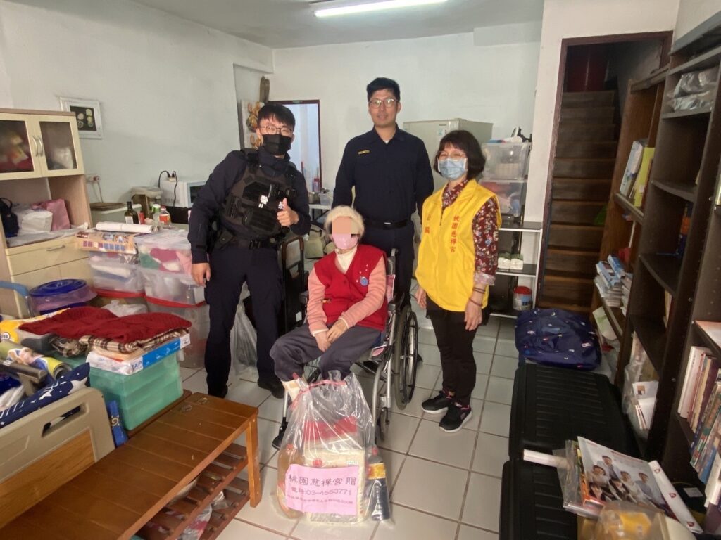 仁愛派出所所長黃智勇、警員宋謝侑儒在2日16時,結合「慈禪宮」集合的民間慈善力量,整備白米、食用油、罐頭及飲料等民生用品,前往仁愛所轄內行動不便的長者及清寒家庭中發放慰問,黃所長與宋謝員也在關懷訪視過程中特別多陪伴長者聊聊天,除了陪伴之外,也多了解有沒有其他需求是可以幫助的。