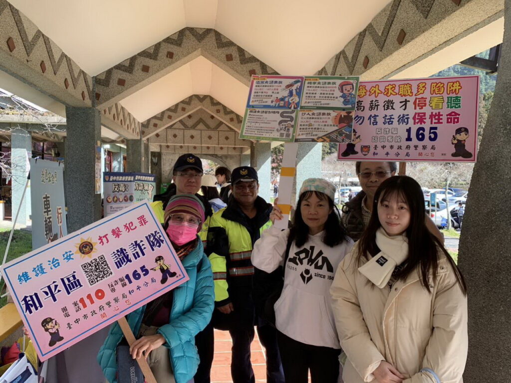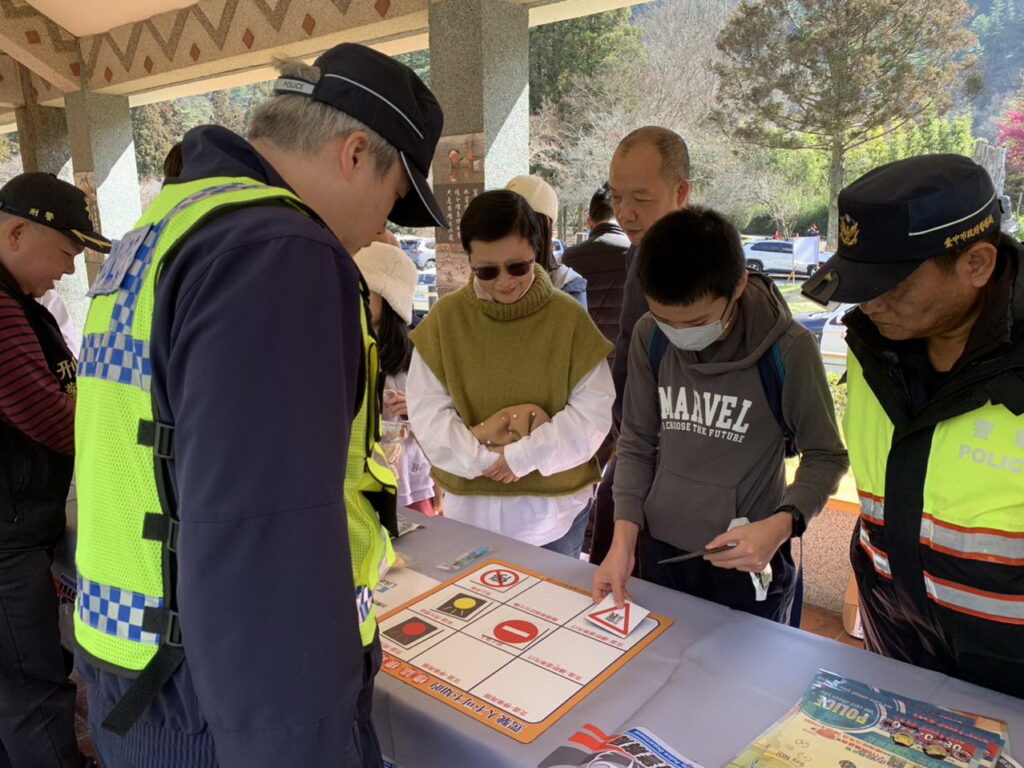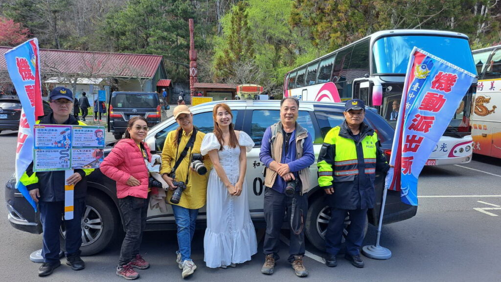 113年武陵農場櫻花季期間自2月8日起至2月29日止,為期22天,為維護花季及春節期間治、交安,提升為民服務效能,和平警分局於昨(6)日10時在武陵遊客中心前,設置機動派出所,即時提供民眾各項交通、治安宣導諮詢及服務,員警藉闖關遊戲與民眾互動,寓教於樂,提醒民眾賞花之餘,注意交通安全及識詐、反毒新知。