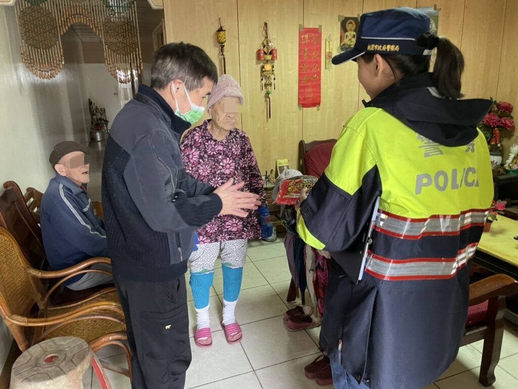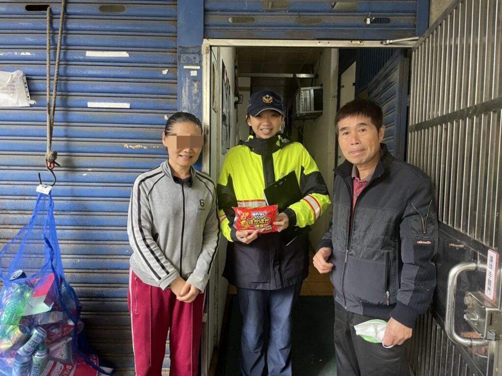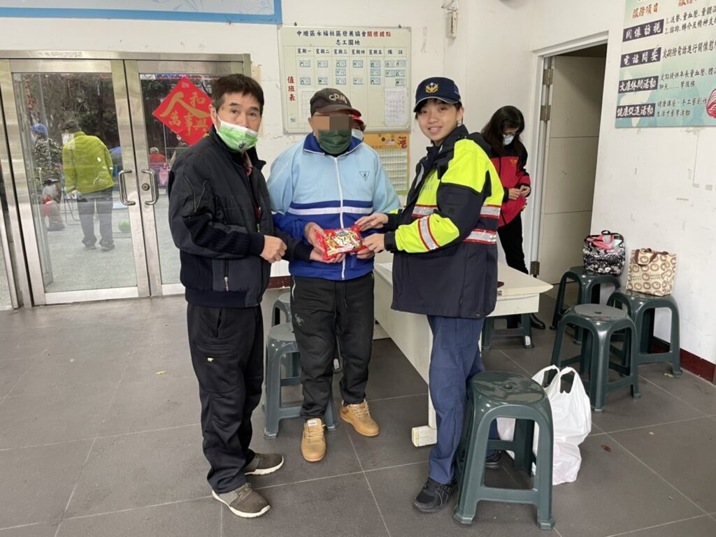 中壢分局中福派出所警員凃怡安、警員朱建鑫平時深耕社區,除了有效預防犯罪藏匿,也致力於發掘需要幫助的弱勢家庭,今年春節恰逢寒流來襲,2名員警特別自掏腰包購買了10大包暖暖包,與永福里里長黃寶貞和里長的先生李詩明一同前往,發送予轄內7處清寒家庭、年邁獨居長者等弱勢族群,希望能助他們度過寒流。