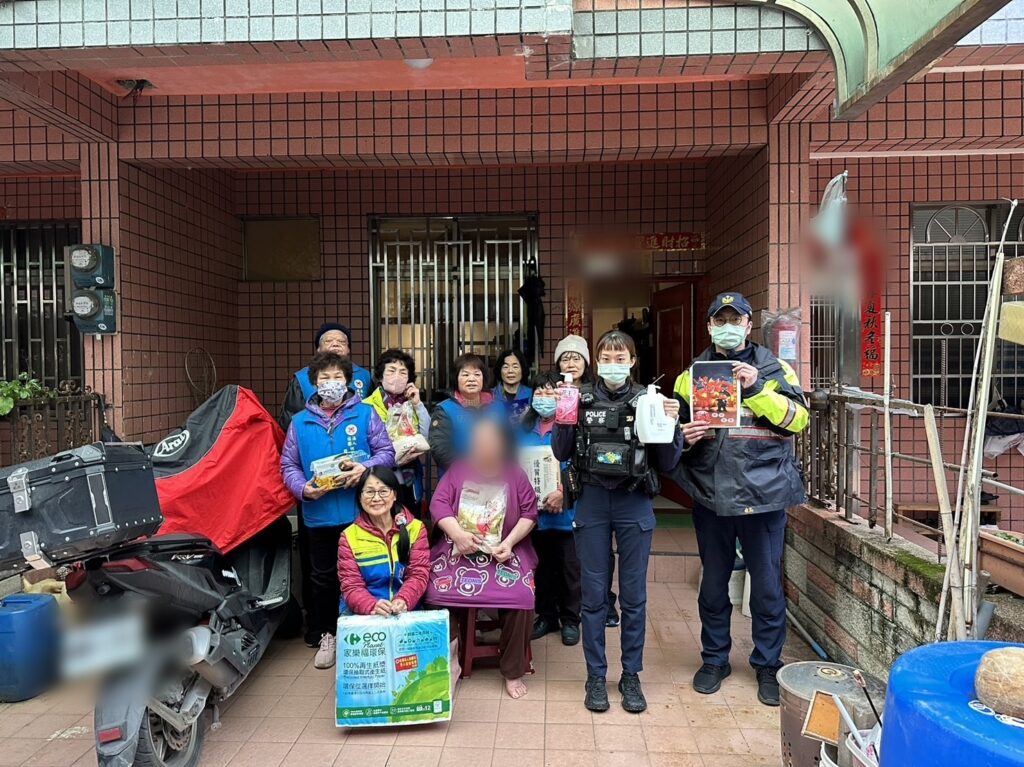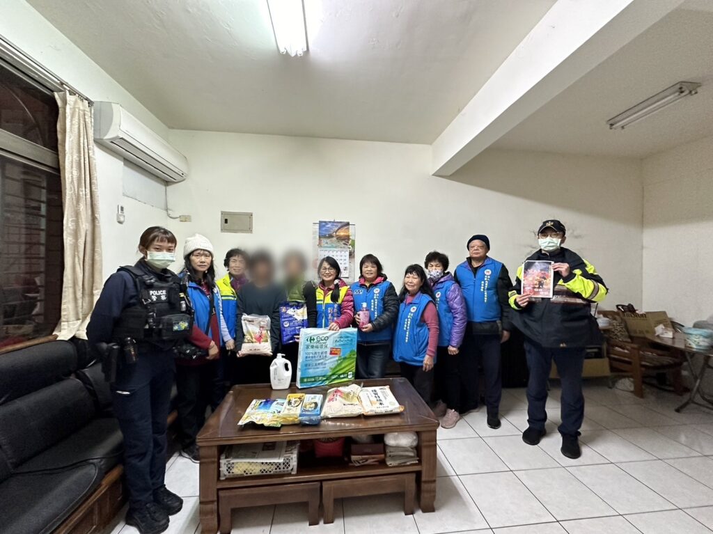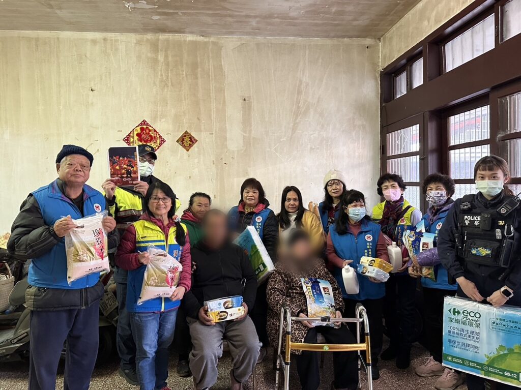 中壢分局青埔派出所近日聯合警察婦女志工及社團法人桃園市愛心服務協會,至轄內弱勢家庭進行關懷訪視並贈送民生物資,盼發揮民間善心的力量,讓清寒家庭在農曆春節能感受到社會溫暖。
