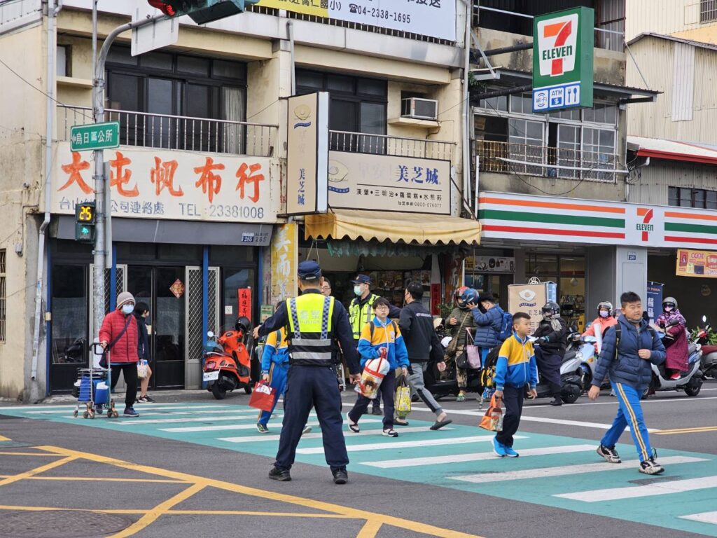 寒假正式結束,臺中市國小於今16日正式開學,為了使父母安心上班、學童開心上學,該分局針對轄內22所國小於開學日全面啟動『護童勤務』,由各派出所及內勤人員編排專責警力於該轄國小校門口執行維護學童上、下學人身安全,並建立校園安全走廊,於學童上下學時段密集巡邏守望,提高見警率讓民眾更安心。