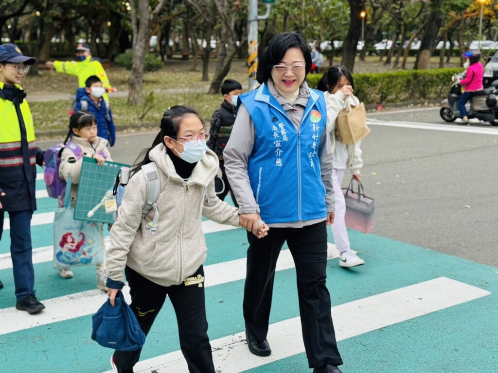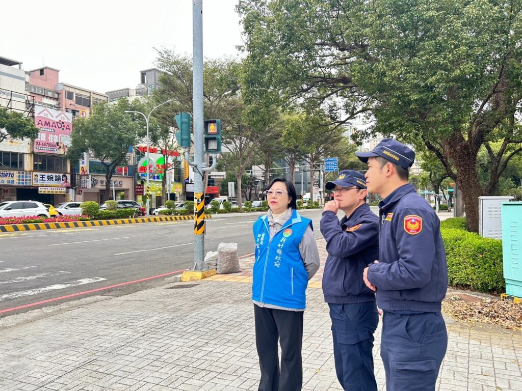 除了對學童的交通安全進行重點關注外,宣介慈同樣帶領交通幹部視察竹北地區上班車流的情況,並指導相應的交通疏導措施,確保全縣各地交通順暢,提供民眾安全便捷的通行環境。