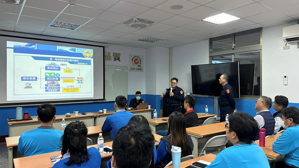 臺中市警察局為強化民眾反詐意識,善用各種大型活動場合進行識詐宣導,清水分局轄內心源工業股份有限公司董事長陳本泓,有鑑於員工與社區內疑似遭詐騙風險增高,在春節連假後開工日特邀請三田所所長黃瑞凱及同仁至公司分享打詐經驗,提高員工識詐及防詐能力。