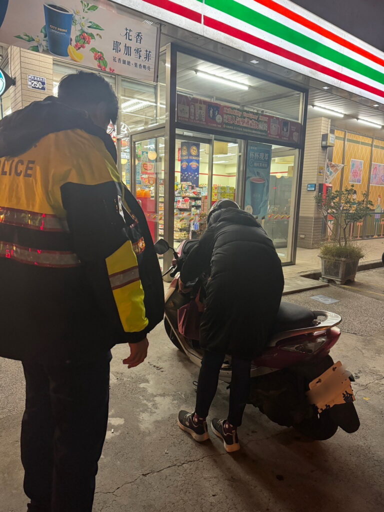 機車沒油求助 潭子暖警寒冬載送協助加油