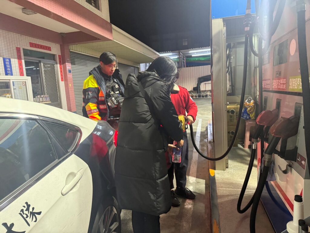 經了解,該名42歲廖姓女子表示正下班要騎車返回西屯住處,惟未注意機車沒油,騎乘一半突自動熄火,因一時不知該如何處理,見到警方恰巧路過,才會攔警車求助,警方查附近剛好有一間加油站,惟考量天氣寒冷且晚上獨留女子一人恐發生危害,便協助載送廖女至鄰近加油站購買汽油,再返回現場替機車加油,廖女哭笑不得的表示沒想到第一次搭警車是這樣的窘境,並頻頻感謝警方之善舉有如寒冬送暖般溫暖。