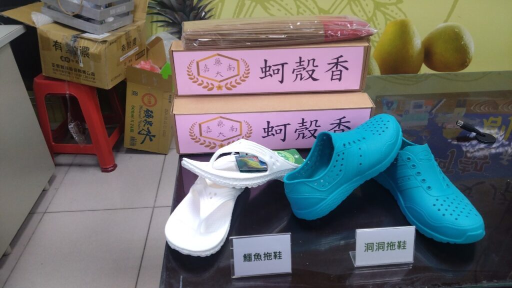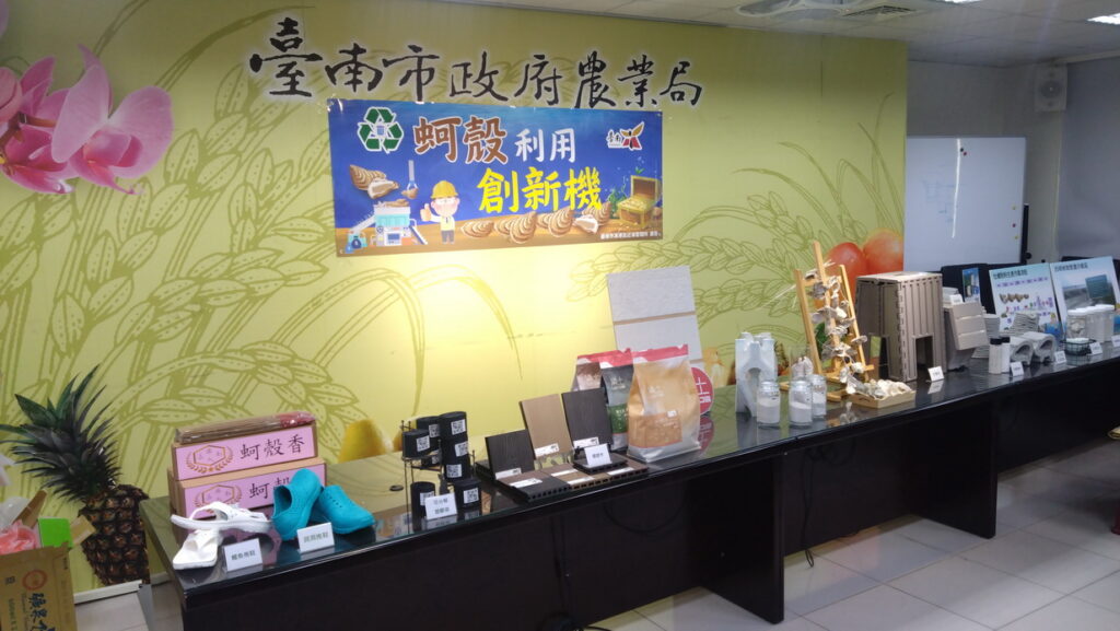 台灣糖業公司表示,台糖生技材料廠是全國唯一取得ISO 9001、ISO45001、BS 8001循環經濟認證及再利用機構許可的牡蠣殼加工廠,每年可處理5萬噸牡蠣殼,經鍛燒、加工後,產出4萬噸蚵殼粉,可依市場需求產出不同粒徑,首波應用在肥料、飼料等農業領域;為提升產品附加價值,台糖積極與國內企業、專家及學研單位合作,推展工業化應用,目前已開發台塑塑膠、3D列印漿體、塑木、拖鞋、收納箱、摺疊椅及文創藝品等項目,另有塗料、保溫材料、生物可分解塑膠、濾材等多項應用正研發測試中。