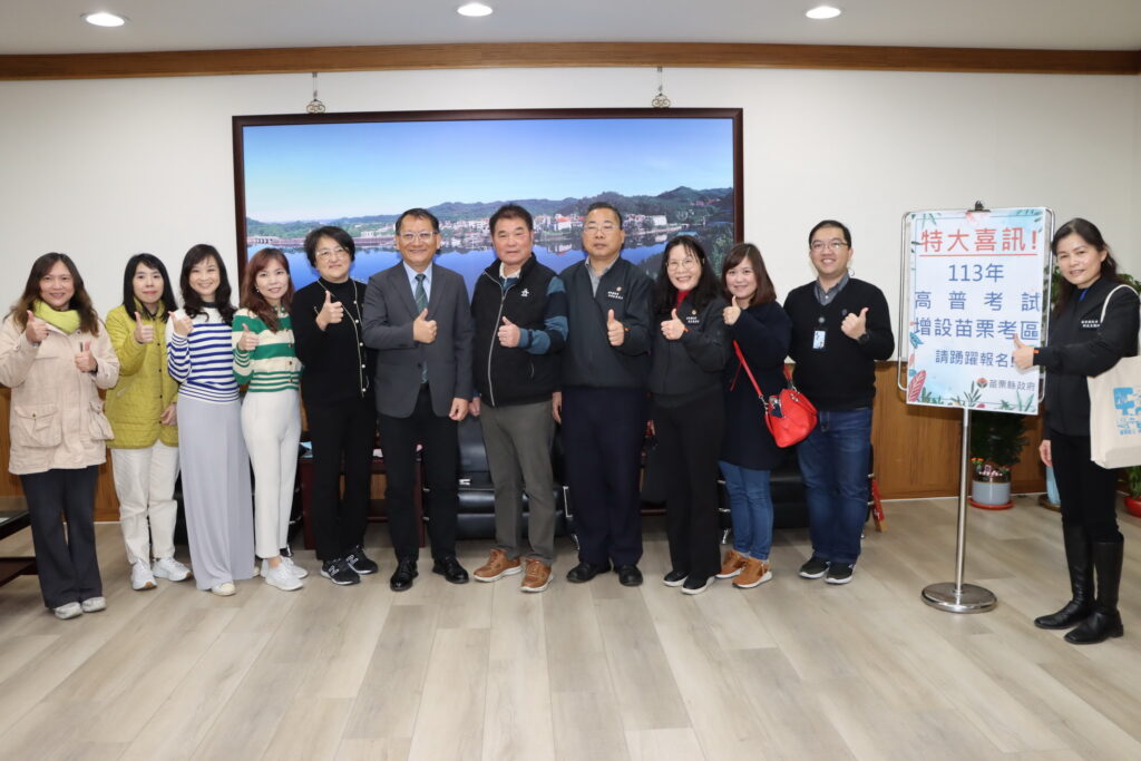 【記者鍾文和/苗栗報導】今年考選部首度在苗栗設置公務人員高普考國家考場,2月26日考選部主任秘書董鴻宗率隊前往苗栗縣政府,感謝縣長鍾東錦、縣府人事處的積極配合及努力,7月將於國立苗栗高級中學設置高普考苗栗考區試場,歡迎有意報考者可上考選部報名系統踴躍報名,報名日期自3月12日至3月21日止。