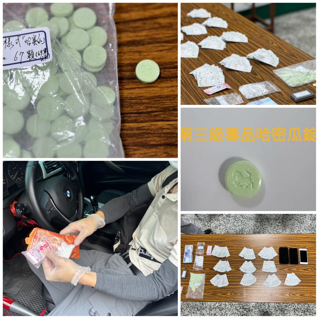 全案調查後依違反毒品危害防制條例移送臺南地檢署偵辦。 陳嫌生性多疑,販賣毒品的地點極少重複,平時也有3、4輛汽車作為替換,有時還會搭乘計程車或是利用外送平台前往交易地點,試圖製造路線斷點,導致警方蒐證困難,但在同仁鍥而不捨的努力之下,透過路口監視器、複式跟監探訪等方式,充分掌握陳嫌販毒的相關事證,報請臺南地檢署指揮偵辦,警方於4日清晨見時機成熟,統合第二及第三警分局警力,持臺南地方法院核發的搜索票、拘票,兵分6路約20餘名警力,分別前往陳嫌的住處及可能交易地點埋伏,待陳嫌駕車返回住處,準備要再度外出就被警方團團包圍,陳嫌見大勢已去也只能乖乖配合。 警方於陳嫌車上,起出第二級毒品大麻1包(毛重約3公克)、第三級毒品愷他命1包(毛重約45公克)、第三級毒品哈密瓜毒錠67顆(毛重約70公克)、毒品咖啡包98包(毛重約257公克)及毒品交易現金新臺幣5萬5千元,訊後依違反毒品危害防制條例移送臺南地檢署偵辦,已遭法院裁定羈押禁見。 少年隊表示,毒品對於少年的誘惑及戕害極深,尤其這次查獲毒品中包含第三級毒品哈密瓜錠,是一種較為少見的新興毒品,以其顏色偏哈密瓜綠而取名,本次在臺南地檢署指揮偵辦及專案小組成員努力蒐證之下,順利在安居專案期間查獲毒品藥頭,積極追溯毒品源頭、淨化生活環境,保護民眾人身安全,建立最宜居、最安全的大臺南!