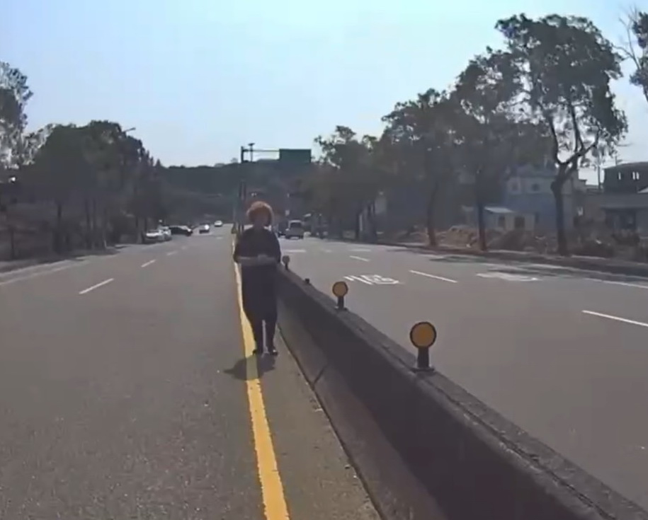 大風捲走千元大鈔 婦人車道上冒險撿拾 巡邏警協助撿拾確保人車安全