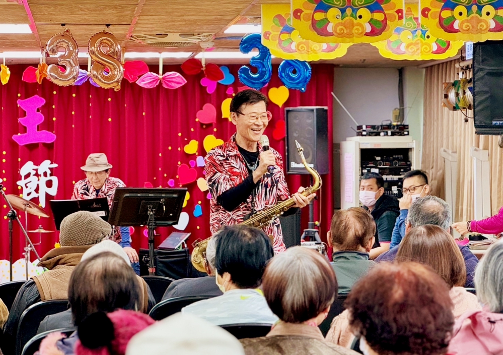 八德榮家劉奶奶說以薩克斯風演奏歌曲更顯活潑,能夠輕鬆地演奏出高低起伏的旋律,與平日卡拉ok音色不同,今天在薩克斯風樂團現場演奏下歡唱,心情特別愉悅,謝謝樂團為大家歡慶婦女節。