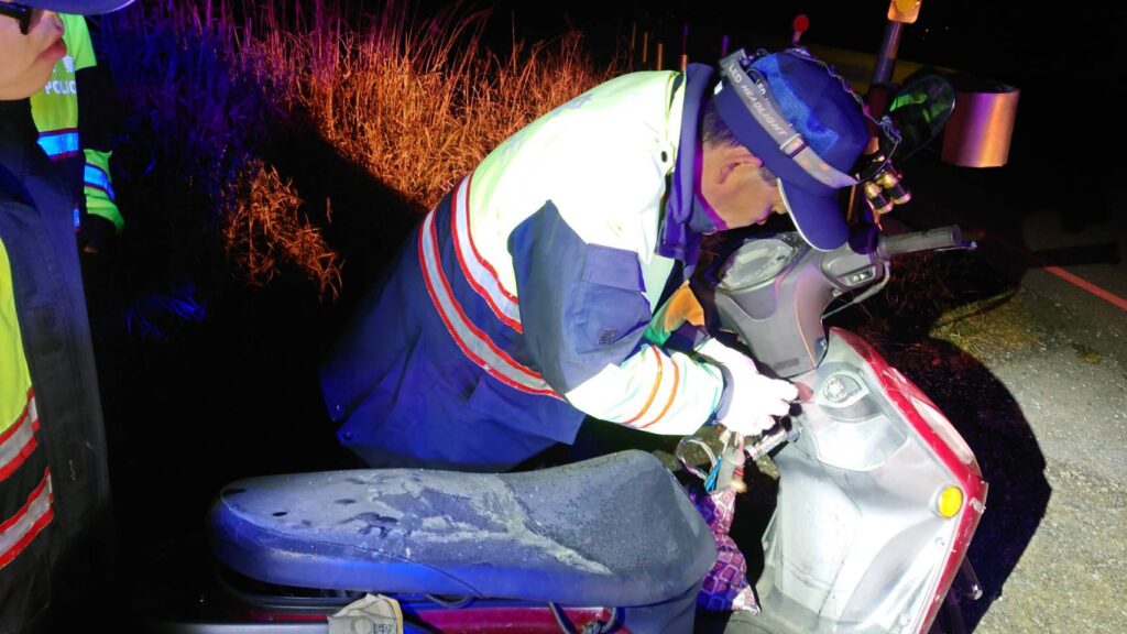 呂警員得知後加滿一桶100元92無鉛用油,攜帶漏斗管,偕同賴員去現場救援,一抵達現場後,看到一名女子顫抖著站在機車旁,有失溫的情況,於是趕緊將女子帶進巡邏車,便先提供熱開水及暖暖包舒緩女子症狀,經了解該女子獨自一人從新北市至合歡山北峰爬山,在晚間7時許爬完山時欲騎車至大禹嶺住宿,不料機車怎麼發都發不動,由於當時天色已晚無人可以求救,只好打電話請警方協助,員警得知消息後,隨後處理停放於登山口的機車,呂員查看機車狀況時,發現車輛座椅已佈滿霜,發動車輛後發現機車油量已用罄,呂員趕緊將汽油加入機車油箱,賴代理副所長依照以往的經驗,先搖晃機車使油料解凍,便尋找電瓶的位置,經連接巡邏車電瓶再跨接該輛機車電瓶啟動引擎,為避免機車熄火,員警繼續熱車,並跟女子說明狀況,該女很感謝警方在低溫下協助,不然夜間山區不知道該向誰求助。