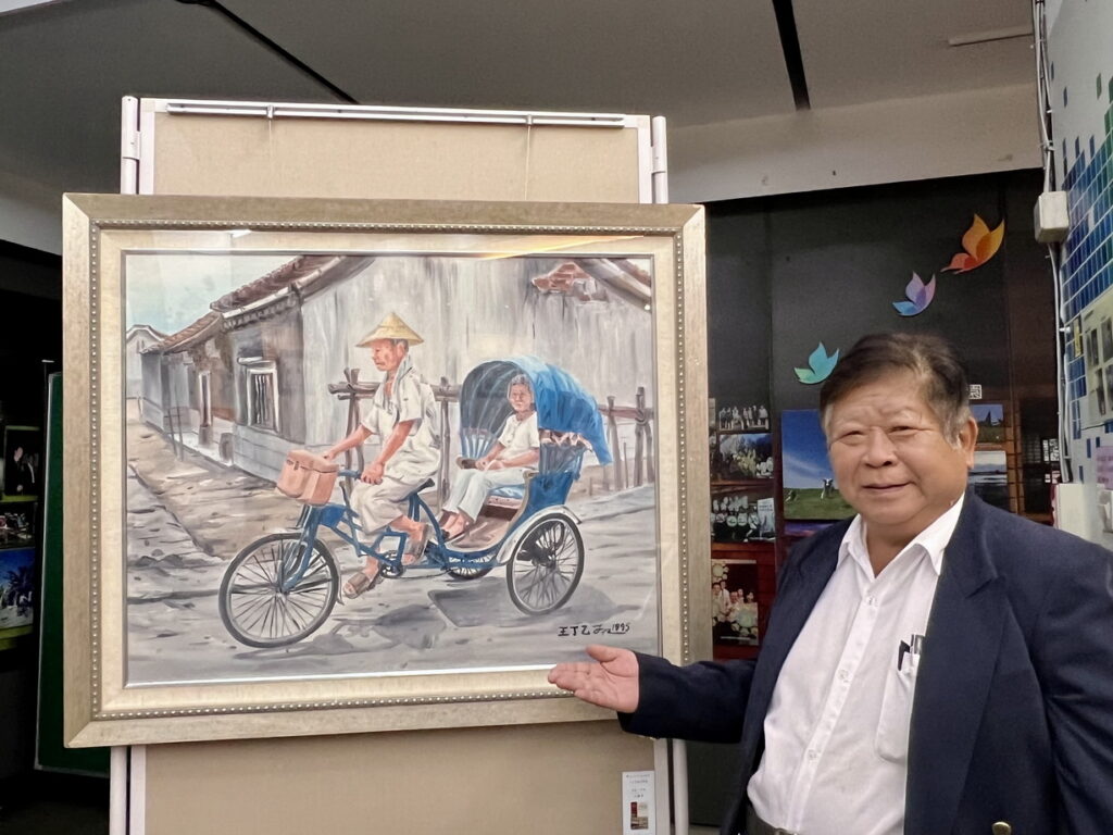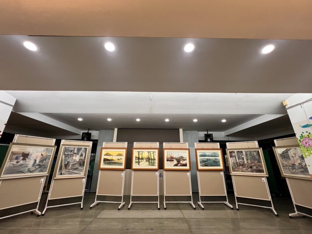 王丁乙老師深入分享他的創作過程,他的水彩畫著重於熟練的宣染技巧、水份控制,以展現農村與漁村景色的獨特之美,使觀眾仿佛置身於美麗鄉村風光中;在油畫作品中,他以四、五〇年的農業時代為題材,細膩地描繪農村純樸生活,呈現罕見的寫實點滴,讓人感受到濃濃的人情味和生活氣息。此外,陶板畫創作是一項挑戰,更是技術與想像的完美結合,透過畫筆沾釉藥在素燒陶板上繪製,經過一千二百度的高溫窯燒,使作品不僅獨特耐久,更可長久保存不褪色,作品散發著獨特的光彩和魅力。