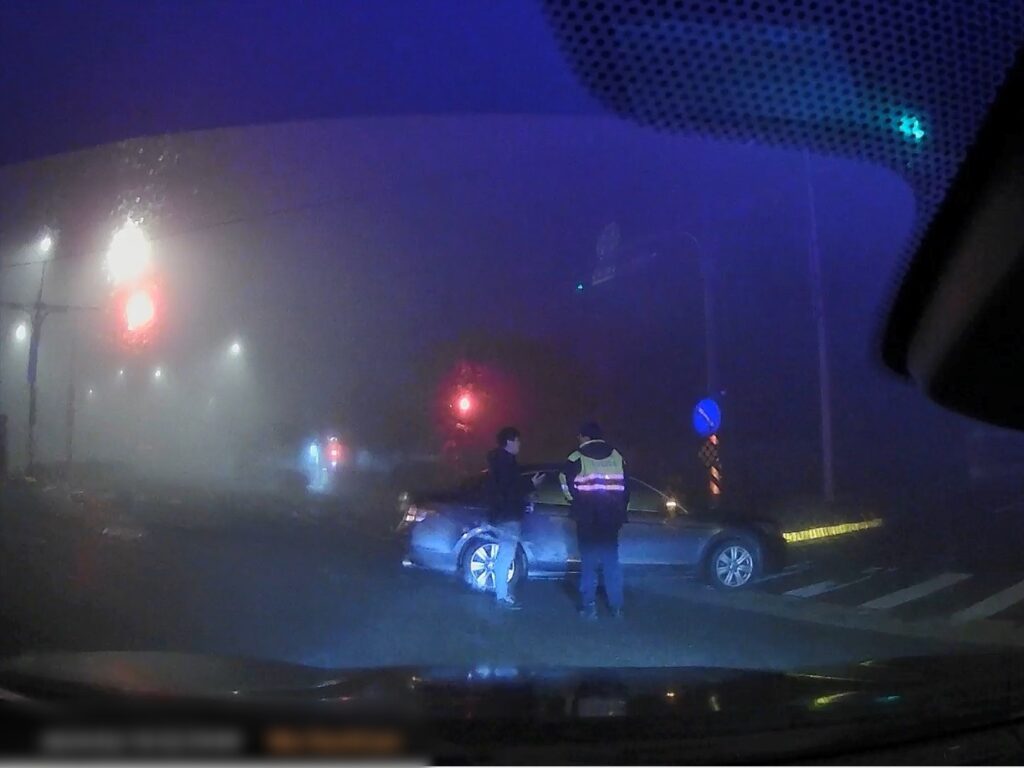 中壢分局青埔派出所於6日2時接獲熱心民眾報案,說在青昇路與大仁路口看到有一輛自小客車不明原因停在路中央,看起來十分危險,希望警方能前來提供協助。青埔派出所接獲通報後,立即派遣正在巡邏的警員黃靖翔、吳庭萱火速趕往現場處理。