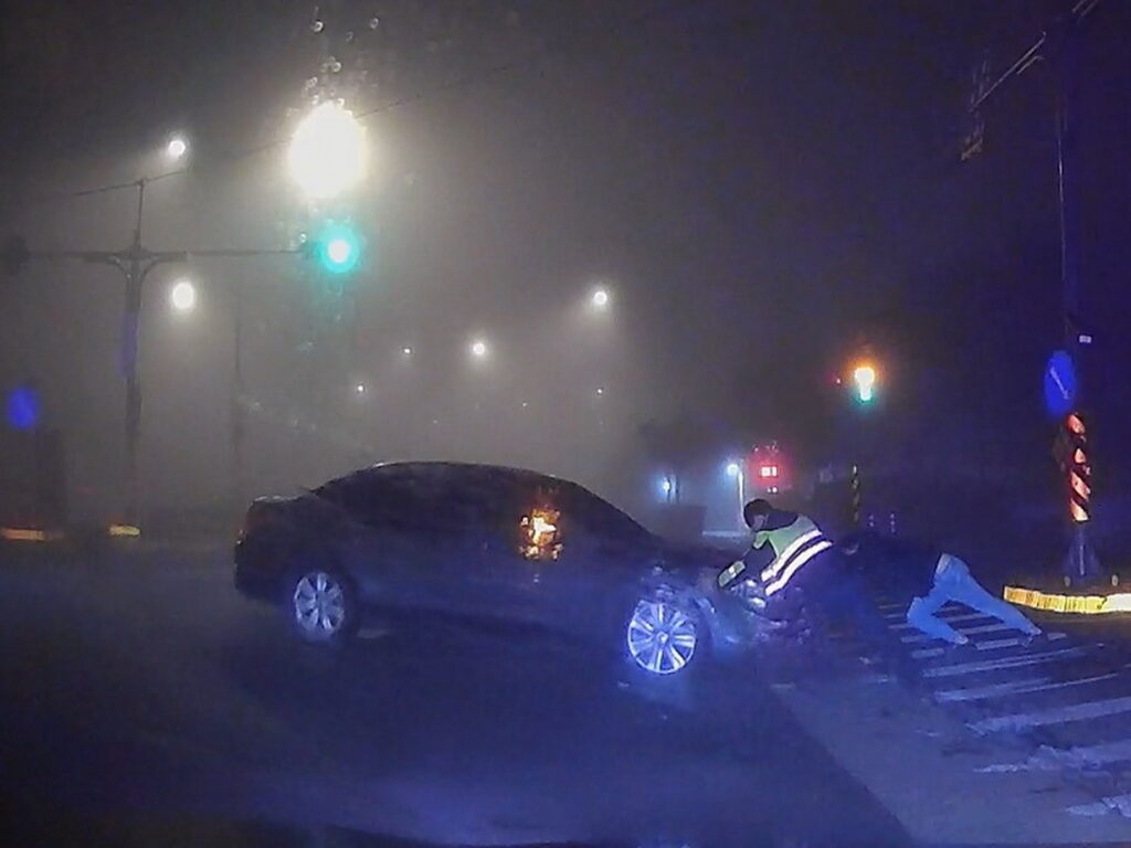 員警趕到現場後,發現有一輛轎車疑似拋錨卡在路中央,員警立即上前關心,這位年約30歲的男駕駛向警方表示,他夜班下班開車回家途中,車子突然熄火就這麼卡在路中央,已經有通知拖吊業者前來協助,但「刁車」的位置實在有點尷尬,自己一個人也無法移車,進退兩難不知如何是好。員警考量當時天候不佳,能見度極低,為避免引發交通追撞事故及造成後方車輛回堵,因此,協助駕駛以徒手推車的方式,合力將拋錨車輛推至路旁安全處等待拖吊業者前來處理,迅速排除交通障礙,即時化解危機。駕駛對於員警的熱心協助深表感謝,不禁豎起大拇指稱讚「中壢警察真是神救援」。