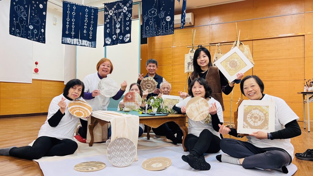 展覽期間,協會也與瑪奇兒(3/12)與維果(3/14)兩間幼兒園合作,由長輩志工協助帶領小朋友,傳承在地文化與手作技藝,同時展場也提供簡單的工具,讓一般民眾,發揮自己的創意及感受刷染及槌染其中的樂趣。