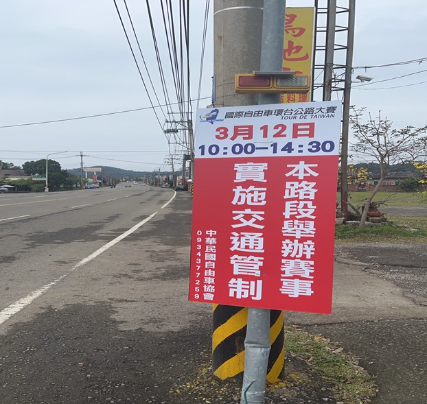 【記者彭維權/苗栗報導】「2024國際自行車環臺公路大賽-浪漫台3線站」於3月12日8至15時舉行,因參賽者為世界各國職業級選手,平均時速可達 50 至90公里以上,轉彎時可能駛入對向車道,另許多選手所屬國家行車方向與我國相反,故競賽全程將嚴格管制人、車,以防意外事故發生,主辦單位中華民國自由車協會已於賽道沿線公告相關道路管制資訊,競賽路段將採區段式全線封閉交通管制,並視狀況延長或縮短,請民眾屆時配合相關管制措施。
