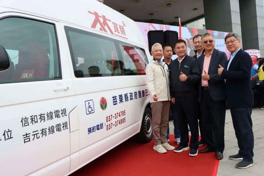 【記者鍾文和/苗栗報導】「大大數位基金會」為回饋社會,攜手吉元、信和有線電視15日在縣政府廣場舉辦「大大攜手 讓愛匯流」捐血家年華公益活動,縣長鍾東錦、議長李文斌和基金會董事長戴永輝等各界熱情響應,更吸引許多民眾踴躍捐血紓解血荒壓力;基金會也捐贈一輛高頂復康巴士給苗栗縣政府,服務廣大身障縣民就醫、外出的生活需求,共同打造有愛無礙、幸福宜居的城市。