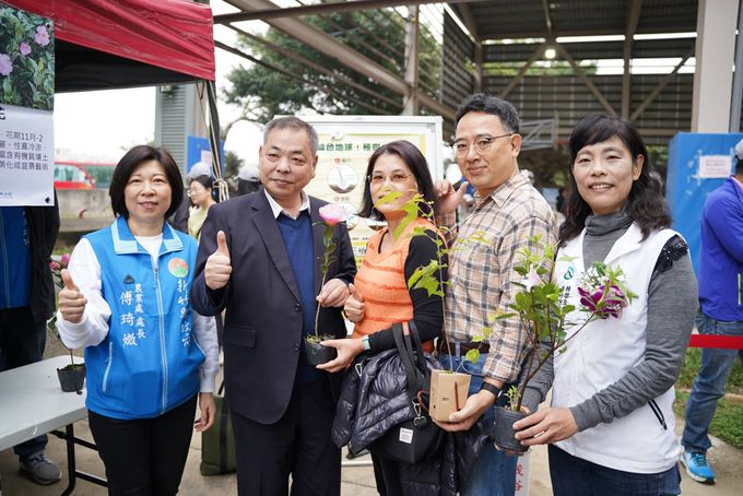 農業處強調,植樹對於降低二氧化碳濃度、減緩溫室效應的非常重要,這次由長官們種下18棵光臘樹,也號召近千人一起種下約700棵的厚葉石斑木。現場除精彩表演外,也有茶花評鑑優勝頒獎典禮及發放宣導品,並免費贈送給現場民眾約2千株樹苗,包括桃金孃、月橘、毛胡枝子、茶花、桂花及杜鵑等樹種,氣氛熱鬧。