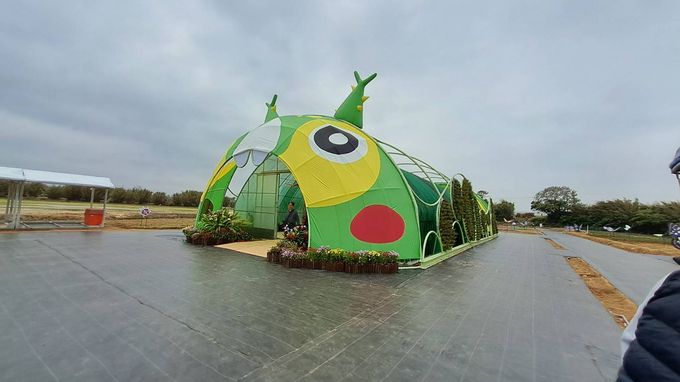 桃市府農業局長陳冠義表示,「食農教育」是桃園農業的重要政策,這次活動可食地景展區是活動亮點,在可食地景區有隻又大又可愛的毛毛蟲「小毛」,將桃園保育的大紫蛺蝶幼蟲化身象徵永續農業的巨大展館,高達6米、長25米,肚子裡展示在地產業特色,每週末有2場體驗活動,可上網預約。
