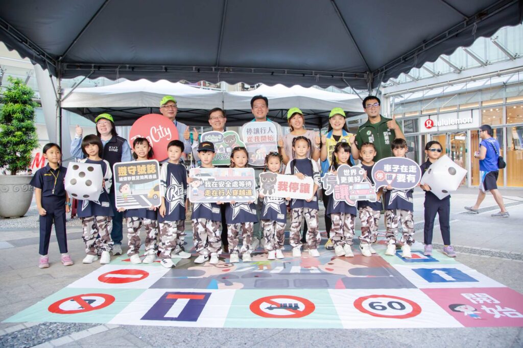 行政處代理處長彭孔貞表示,今年交通安全月的活動設計了三款闖關遊戲。首先是「巨型拼圖挑戰」,民眾需在30秒內完成九個方形組合,總面積為90公分的立體拼圖;第二項闖關是「放大版交通安全大富翁」,闖關者擲骰子後依點數前進,並回答所到格子的交通號誌名稱;第三項闖關則是「交通號誌翻翻樂」,闖關者需翻出相同的兩張圖卡,並正確回答圖卡上的交通標誌。完成三項闖關的大小朋友可獲得闖關禮品一份,透過寓教於樂的方式,宣導交通安全的重要性。