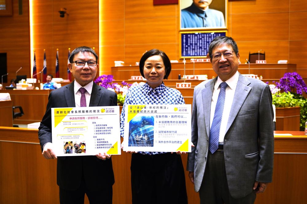 【記者彭慧婉/新竹報導】新竹縣議會舉辦第20屆第5次定期會,今(3)日由新竹縣議員邱靖雅總質詢,她聚焦世界壯年運動會延伸的運動議題、高齡化社會的長期照顧議題、紀錄片「造山者-世紀的賭注」延伸的科技教育議題,同時也關心地方產業與教育、統籌分配款及一般性補助款等,新竹縣長楊文科及相關局處也一一回應。