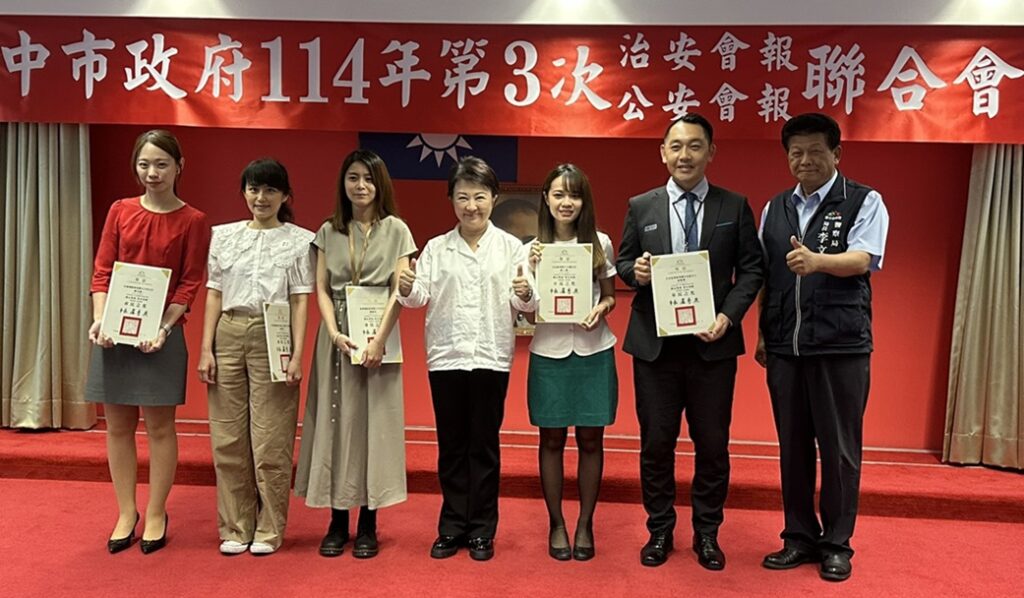 本次治安會報公開表揚多項優良事蹟,包含近期攔阻民眾遭詐欺款項有功之金融機構行員、地政人員與員警,還有熱心協助警方破案之民眾。其中到場接受表揚的兆豐國際商業銀行太平分行楊姓行員,其成功攔阻民眾遭詐騙金額新臺幣(以下同)600萬最多,另台新國際商業銀行大里分行廖姓副理及中華郵政臺中大智郵局楊姓行員,於犯嫌臨櫃提款時,研判係詐騙集團車手,通知警方到場查處,成功逮捕詐欺車手。
