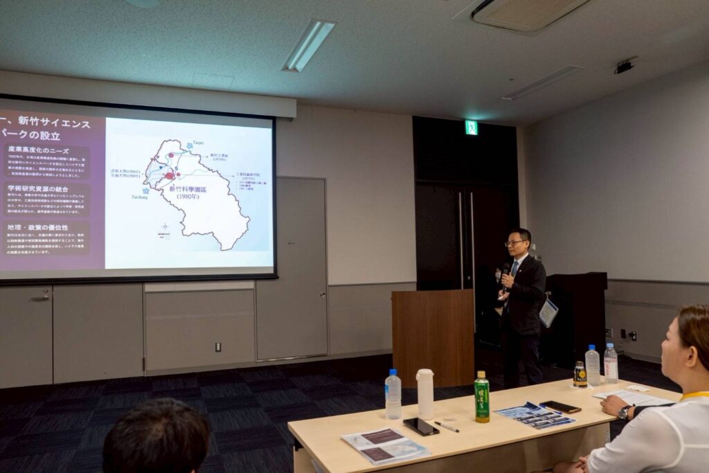 行政處長周秋堯則分享新竹縣在邁向永續發展過程中,如何與科學園區攜手共榮,例如在因應竹科發展所衍生的交通壅塞問題時,如何導入人工智慧(AI)與即時感測技術,透過車輛感測器與智慧號誌系統調控車流量,有效紓解園區與周邊地區的交通壓力。此舉引起日本地方政府高度關注,期望未來能導入相似技術於熊本地區。此外也分享在智慧城市治理方面的實務經驗,展現新竹縣與科學園區間密切的共生關係,並將智慧城市願景化為具體行動。