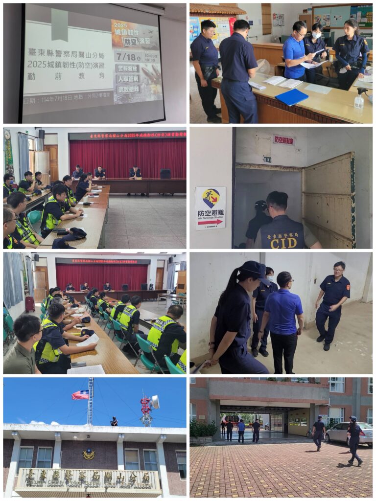 於演習18日8時30分,由分局長鍾國楨主持勤前教育,縣警察局督察長蔡培元及駐區督察陳敬吉也蒞臨指導,隨後依計畫布崗,警報響起後,蔡督察長及鍾分局長與相關業務單位,陪同內政部警政署警務正蔣延紹依序前往防空避難處所視導,展現對於該項勤(業)務及演習之重視。上午10時整,隨著手機警示簡訊發送與警報聲響起,全縣同步進入演習狀況。關山分局員警與民防夥伴們即時進行疏散與引導工作,協助民眾依照既定路線撤離至安全處所,模擬實際空襲來臨時的應變程序。