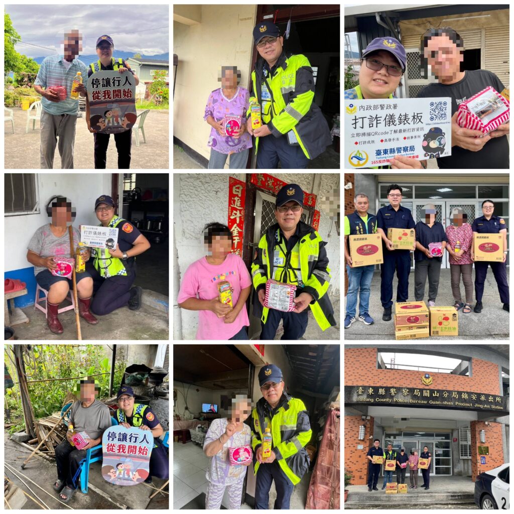 關山警察分局表示,弱勢家庭及獨居長者,都需要大家的關懷,此次錦安派出所攜手轄內宮廟送暖,讓他們感受到來自鄰里的溫暖。另外在此提醒民眾,不論自身或左鄰右舍在生活上面臨困境,都可至當地分駐(派出)所尋求幫助,警察將轉介政府社福單位或是引社會資源適時伸出援手,做最適當的處置,也請大家發揮「警民一家」的精神,與警察一起伸出您溫暖的雙手,讓溫情滿人間!