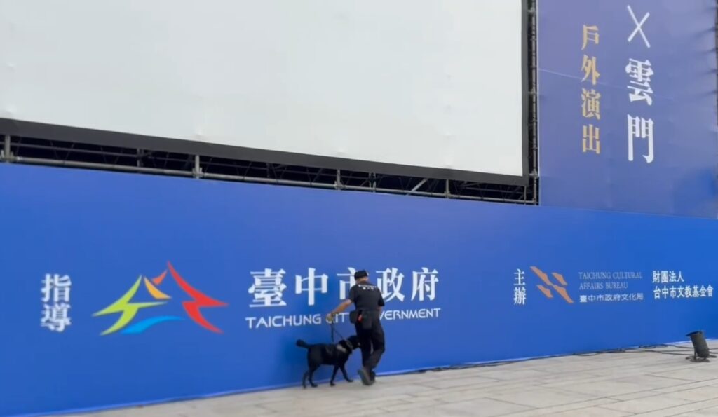 臺中市今夏最令人期待的藝術饗宴——雲門舞集《毛月亮》戶外公演,於2025年8月9日在臺中市政府前廣場熱情揭幕,吸引數千名民眾共襄盛舉。為維護活動現場公共安全保障所有觀眾及表演團隊的安全,臺中市政府警察局警犬隊特別派遣2隻偵爆犬,全面守護這場藝文盛會。本次演出為開放式戶外大型藝文活動,參與人數眾多,為降低潛在安全風險,警犬隊於演出開始前即展開場檢作業。偵爆犬在領犬員引導下,針對舞台設施、觀眾席區域、周邊環境進行爆裂物搜查,全面維護場地安全,讓表演單位與觀眾皆能安心參與享受夜晚藝術饗宴。