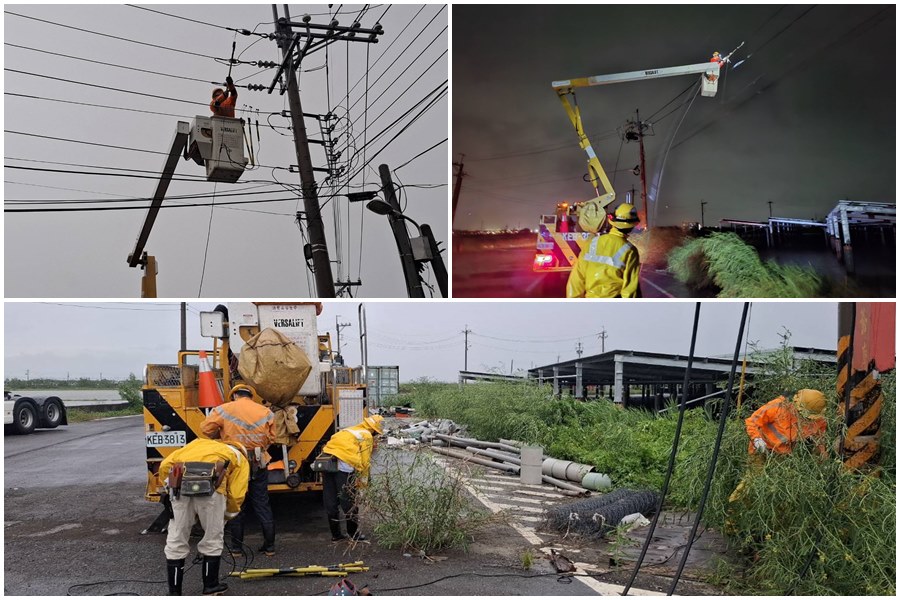 台電指出,為確保搶修人員安全,昨夜風勢最強時先行退避,待風力減弱後即刻進場,全力啟動搶修模式。除自營工班,承攬商也全數投入,並出動吊臂車、昇空作業車及發電機,按「變電所→主幹線→分歧線→低壓線→接戶線」順序搶修,優先恢復醫院、自來水廠、電信等公共設施供電。